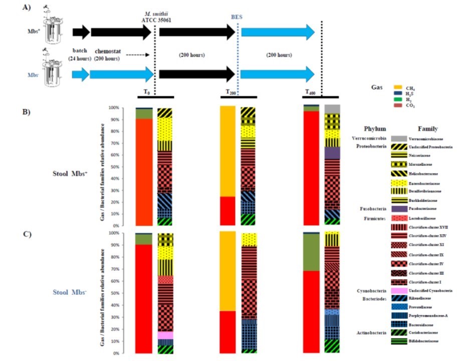 Exemple d’emploi des systèmes ECSIM (P-ECSIM) pour l’étude de l’impact des archées méthanogènes (ici Methanobrevibacter smithii) sur un microbiote intestinal humain.
