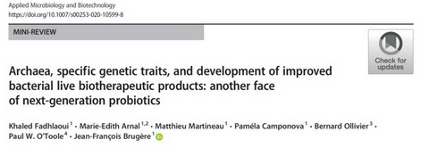 2020-03 Les archées et leurs spécificités génétiques pour le développement de LBPs, y compris bactériens. Publication dans le journal Applied Microbiology and Biotechnology