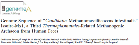 Genome Sequence of "Candidatus Methanomassiliicoccus intestinalis" Issoire-Mx1, a Third Thermoplasmatales-Related Methanogenic Archaeon from Human Feces.