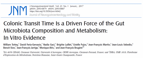 Conclusions: This study provides the evidence that the increase of transit time, independently of other factors, affects the composition and metabolism of the gut microbiota. The transit time is one of the factors that explain some of the modifications seen in the gut microbiota of the elderly, as well as patients with slow transit time.